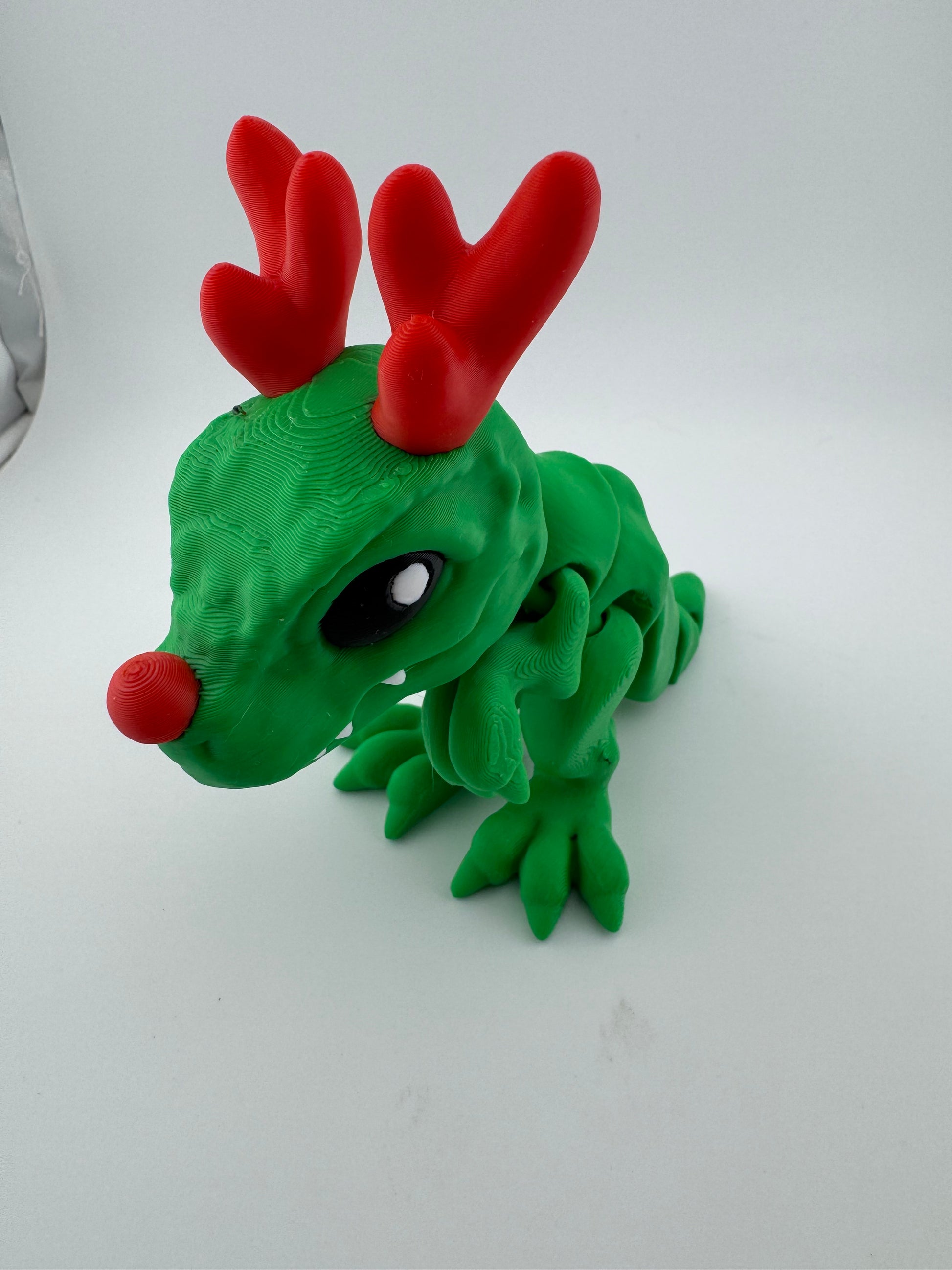 Expertly 3D printed with smooth contours and expressive details, this piece is fully poseable, making it perfect for display on shelves, desks, or holiday tables. Whether you’re decorating for the season or looking for a unique gift, this reindeer-inspired dragon adds personality and warmth wherever it’s placed.
