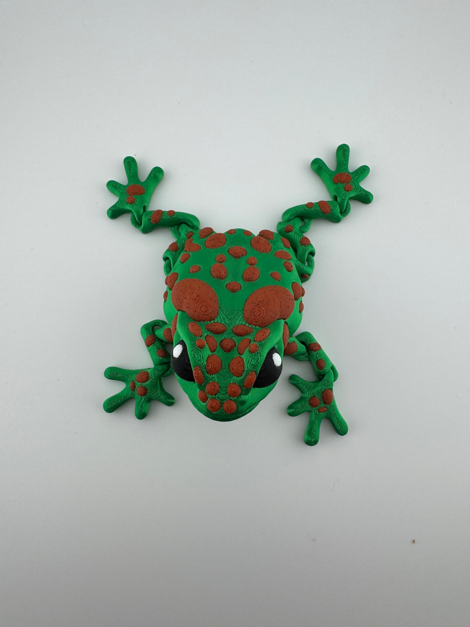 Meet the Spotted Toad, a delightful 3D-printed creation that captures the charm and texture of nature’s quirky amphibians. Printed in vivid green with warm brown accents, this toad features smooth curves, expressive eyes, and a realistic stance that gives it personality from every angle.